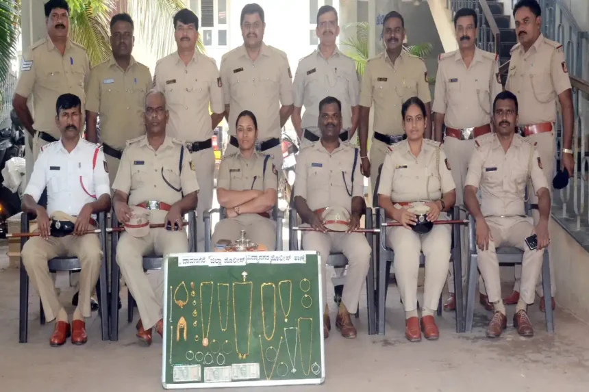 ದಾವಣಗೆರೆ (Davanagere): ಮನೆ ಕಳ್ಳತನ ಪ್ರಕರಣಕ್ಕೆ ಸಂಬಂಧಿಸಿದಂತೆ ಆರೋಪಿಯನ್ನು ಬಂಧಿಸಿದರು ವಿದ್ಯಾನಗರ ಪೊಲೀಸರು 33,24,300/- ರೂ ಮೌಲ್ಯದ ಸ್ವತ್ತು ವಶ ಬಂಗಾರದ ಆಭರಣಗಳು, ಬೆಳ್ಳಿ ಸಾಮಾನುಗಳು, ನಗದು ಹಣ ಹಾಗು ಕೃತ್ಯಕ್ಕೆ ಉಪಯೋಗಿಸಿದ ಕಾರು ವಶಕ್ಕೆ ಪಡೆದಿದ್ದಾರೆ.